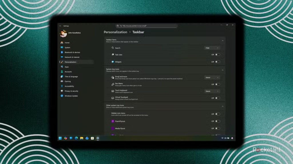To create a truly clean and distraction-free taskbar, consider hiding or disabling the following elements: