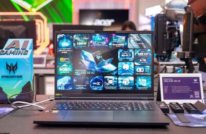 Acer Predator Helios 18 AI hứa hẹn mang đến trải nghiệm đỉnh cao cho game thủ và những người sáng tạo nội dung nhờ sự kết hợp của bộ vi xử lý mạnh mẽ nhất từ Intel, card đồ họa tân tiến nhất của NVIDIA, màn hình 4K mini LED tuyệt đẹp và khả năng nâng cấp linh hoạt như một máy tính để bàn thực thụ.