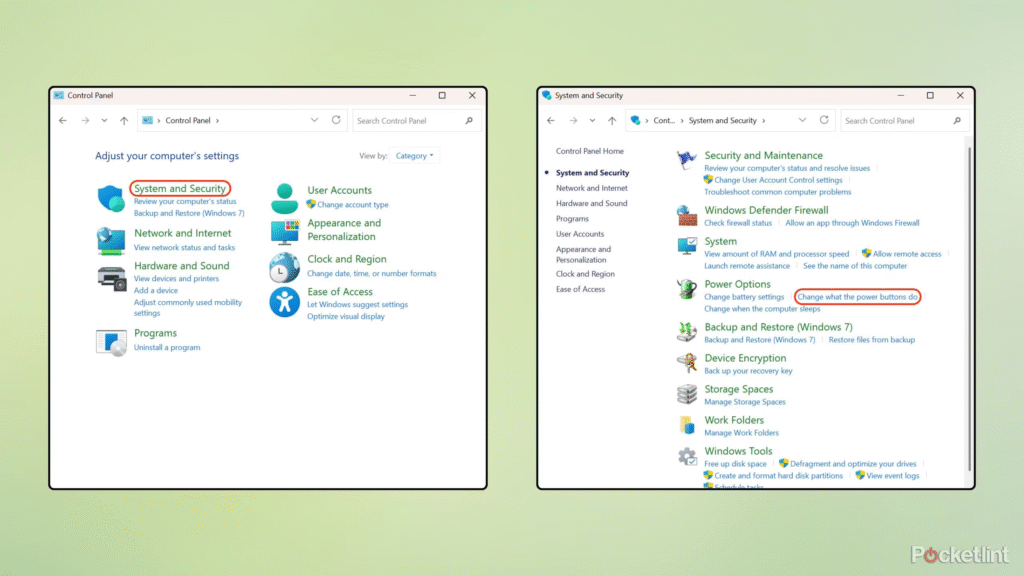 System and Security > Power Options > Choose what the power buttons do.