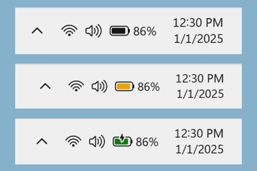 Bản cập nhật giới thiệu các chỉ báo pin được thiết kế lại trên cả màn hình khóa và thanh tác vụ. Giờ đây, bạn sẽ thấy các biểu tượng pin với chỉ báo màu sắc trực quan, cùng với khả năng hiển thị phần trăm pin một cách rõ ràng. Điều này giúp bạn dễ dàng kiểm tra trạng thái sạc và mức pin của thiết bị chỉ trong nháy mắt, ngay cả khi màn hình đang khóa.